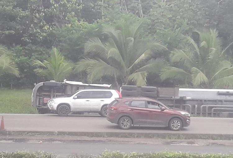El primer hecho se dio cerca a un centro comercial del corregimiento de Sabanitas, cuando el conductor de un carro cisterna perdió el control y fue a dar a la cuneta. El camión cisterna quedó de costado.