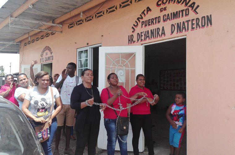 La presunta separación del cargo y el envío de vacaciones de cinco funcionarias que laboran en la Junta Comunal y Casa de Paz del corregimiento de Puerto Caimito generó acciones de protesta ayer, en este sector de La Chorrera.