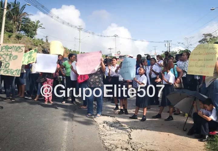 Panamá- Un grupo moradores, padres de familia y estudiantes protestaron hoy, miércoles en la vía principal de Nuevo Chorrillo, distrito de Arraiján, por falta de agua potable y exigir un terreno propio para la escuela.