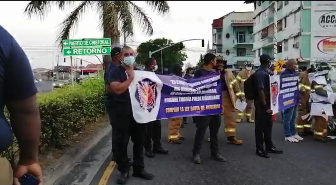 Bomberos de la provincia de Colón protestan en la entrada de la urbe , han cerrado un paño de ingreso, por la falta de ascensos dentro de la institución.