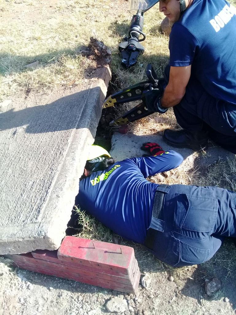 La bombera Katherine Bravo extrae a los perritos con la utilización de nuevas herramientas de rescate.