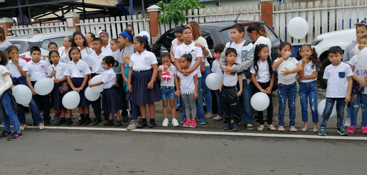 Vistiendo de blanco, maestros, padres de familia y alumnos de la escuela Naciones Unidas (ONU) en el distrito de La Chorrera, formaron hoy, jueves, una cadena humana frente plantel escolar, exigiendo se suspenda el tránsito de equipo pesado frente a la escuela.