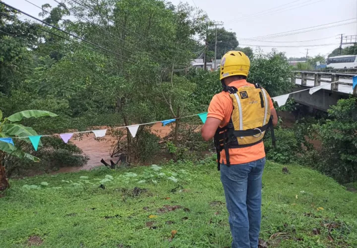 Funcionarios del Sinaproc mantienen monitoreo en río Caimito, Panamá Oeste, porque se encuentra acrecentado , pero dentro de su cauce.