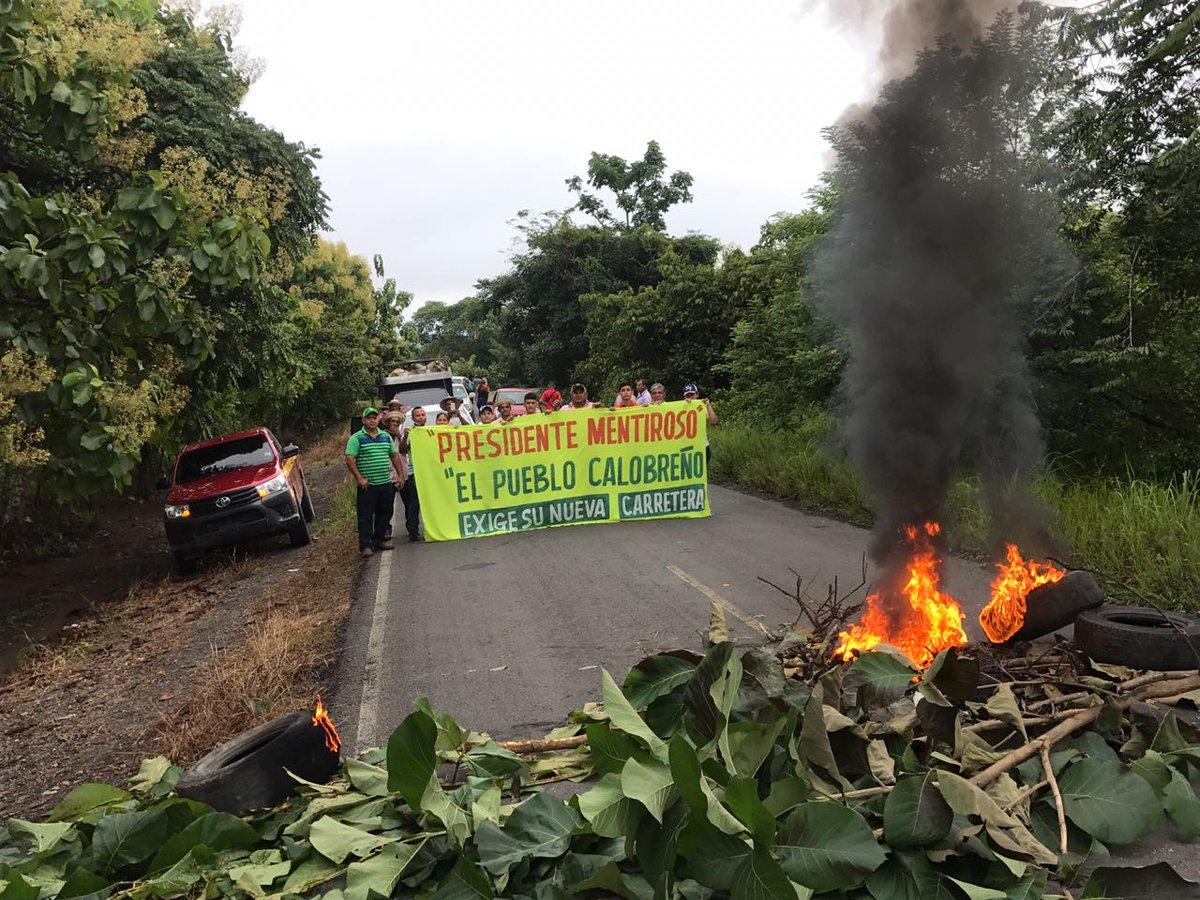 Panamá- Residentes de Calobre y otras comunidades, provincia de Veraguas, salieron a protestar hoy, lunes, para exigir la construcción de la nueva carretera Jaguito-Calobre.