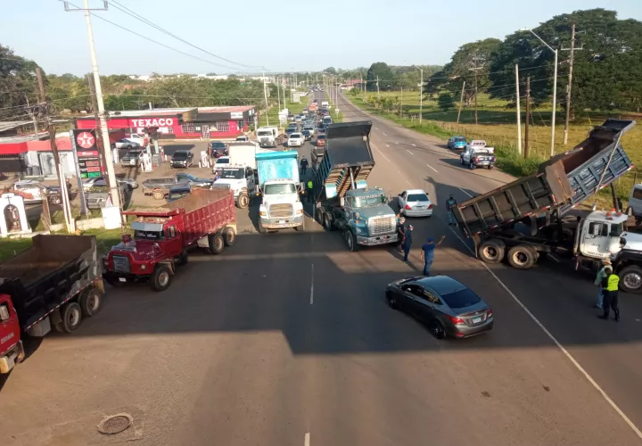 Panamá- Camioneros de las provincias de Herrera y Los Santos se manifestaron para exigir a las empresas que realizan proyectos de construcción en esta región del país, tomarlos en cuenta para trabajar en dichas obras.