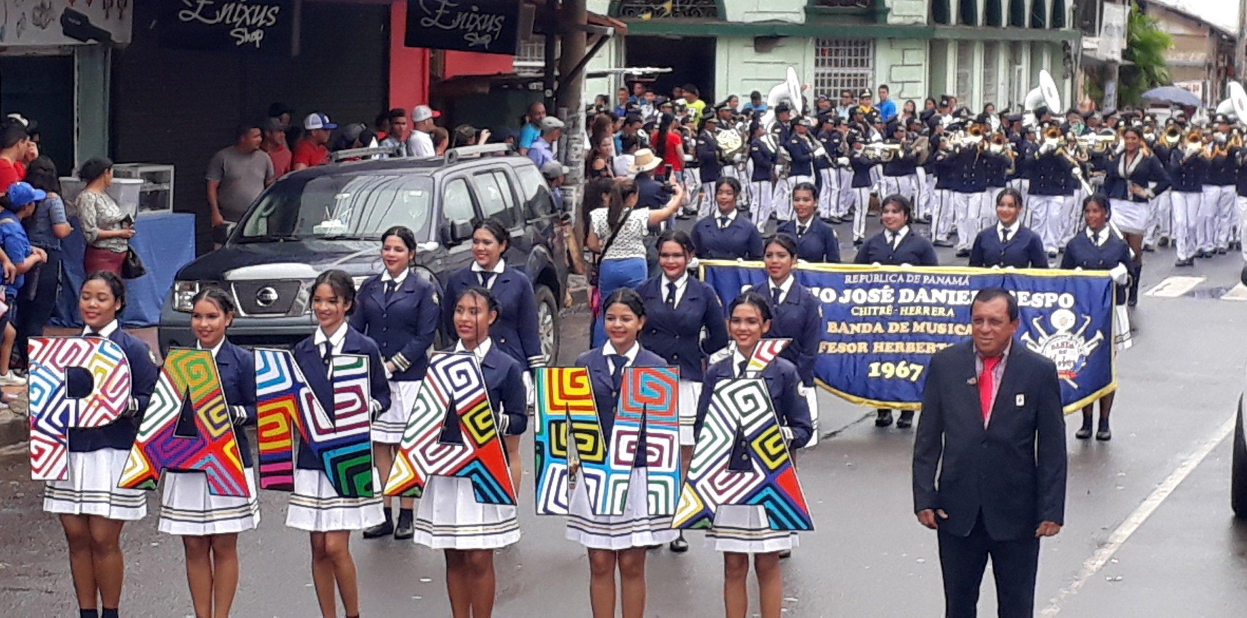Pese a la pertinaz lluvia que acompañó el acto protocolar y los desfiles cívicos de este 3 de noviembre, en la provincia de Veraguas, estudiantes y delegaciones de escuelas y entidades públicas lucieron sus mejores galas para rendir honor a la patria.