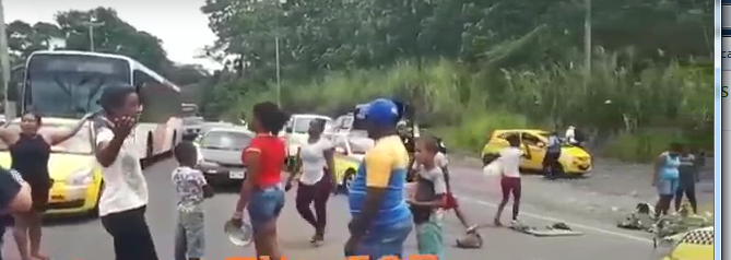 Panamá- Mujeres, hombres y niños cerraron la vía a la altura del proyecto habitacional Altos de los Lagos de Colón para exigir agua las 24 horas del día.