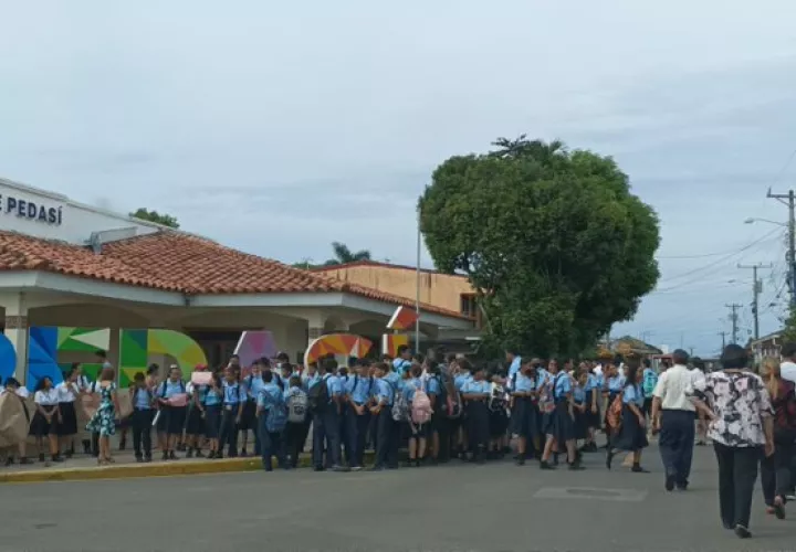 Estudiantes y docentes del Centro Educativo Básico General "Plinio Antonio Moscoso" con el apoyo de moradores realizaron una manifestación en la principal vía de Pedasí, provincia de Los Santos, para solicitar a las autoridades una pronta solución por el deficiente servicio de agua potable.