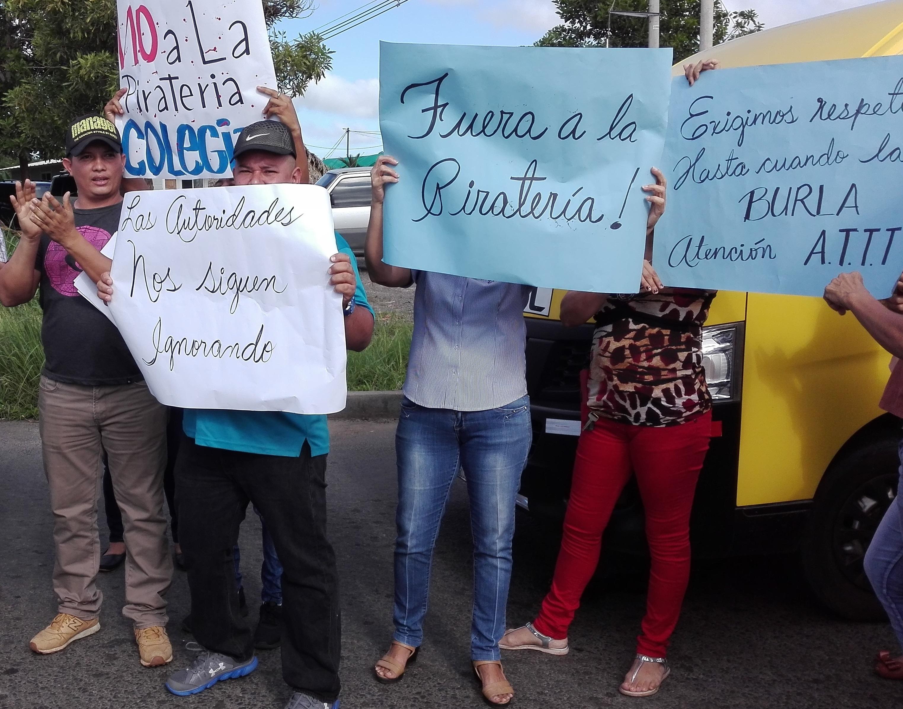 Panamá- Un grupo de conductores de buses colegiales mantienen una protesta a orilla de la autopista Arraiján- La Chorrera, exigiendo operativos en contra del transporte ilegal de estudiantes.