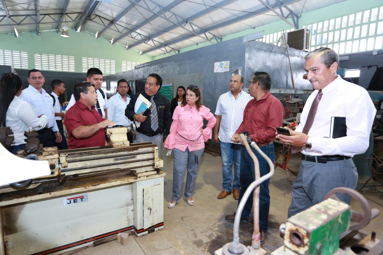 Además de la pista de atletismo, cancha sintética, auditorio, muro perimetral incluyendo el equipamiento de los talleres industriales y mobiliario de seis aulas.