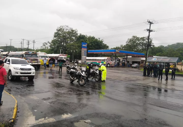 A todo esto, el sector transporte desde temprano se ubicaron sus buses en Sabanitas centro, para iniciar una caravana de apoyo hacia el área de los Cuatro Altos a apoyar al CUCO de la cual forman parte, pero se les impidió el acceso, generando un tranque vehicular.