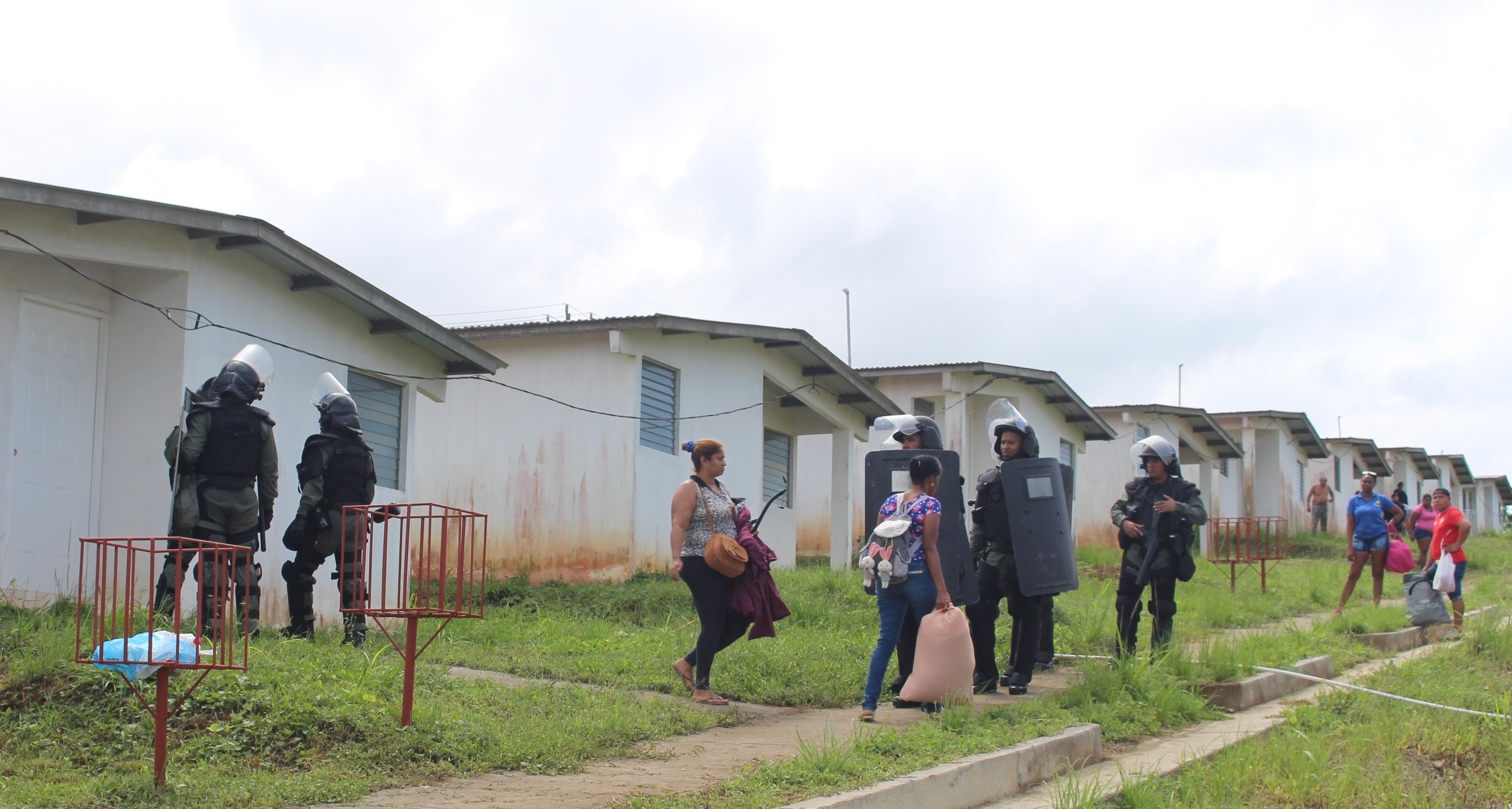 Las más de 250 familias que la noche del lunes invadieron el proyecto habitacional Lomas de Mastranto en el distrito de La Chorrera, fueron desalojadas ayer por Unidades de Control de Multitudes de la Policía Nacional (PN) de forma pacífica.