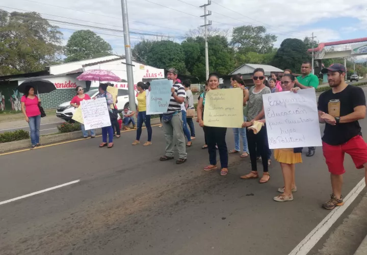 Padres de familia de la escuela Leopoldina Field del distrito de Dolega, provincia de Chiriquí, salieron a protestar hoy cerrando dos paños de la vía principal que conduce a Boquete para exigirle al Ministerio de Educación  (Meduca) nombre 5 docentes que hacen falta.