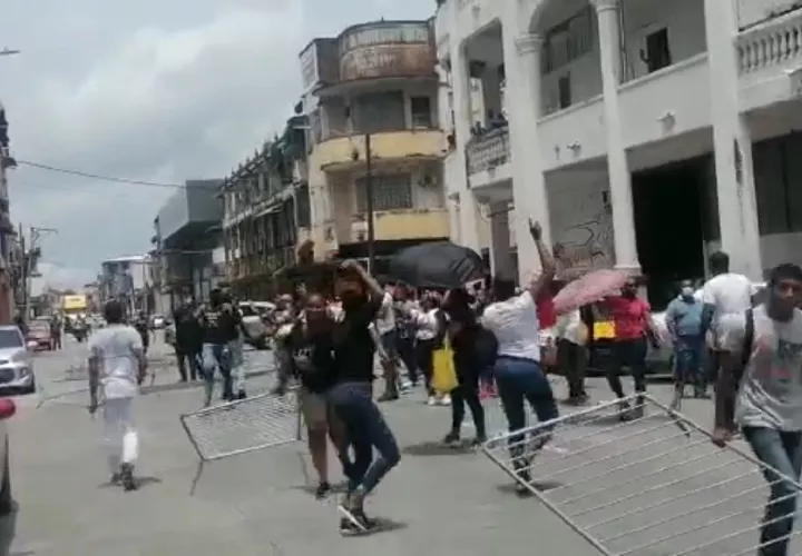 Manifestantes en Colón removieron ayer los barandales de protección ubicados en los predios de la gobernación de la provincia.
