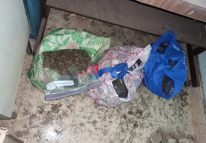 Al menos 64 bolsas transparentes de mediano tamaño con hierba seca que se presume es marihuana, fue encontrada por las unidades antidrogas en el sitio.