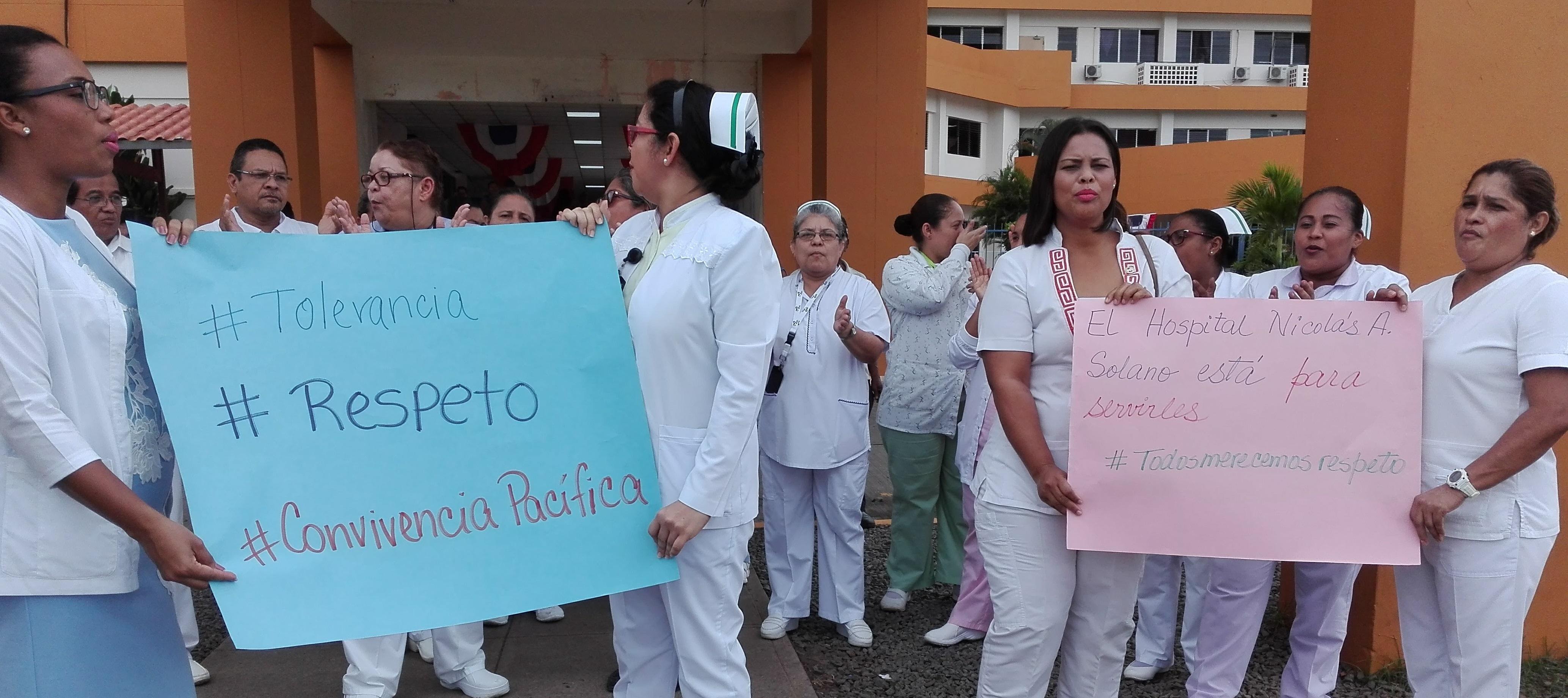 Personal de enfermería que labora en el cuarto de urgencias del Hospital Nicolás Alejo Solano en la provincia de Panamá Oeste protestaron hoy,viernes, a las afueras del este nosocomio, exigiendo respeto de parte de los pacientes.