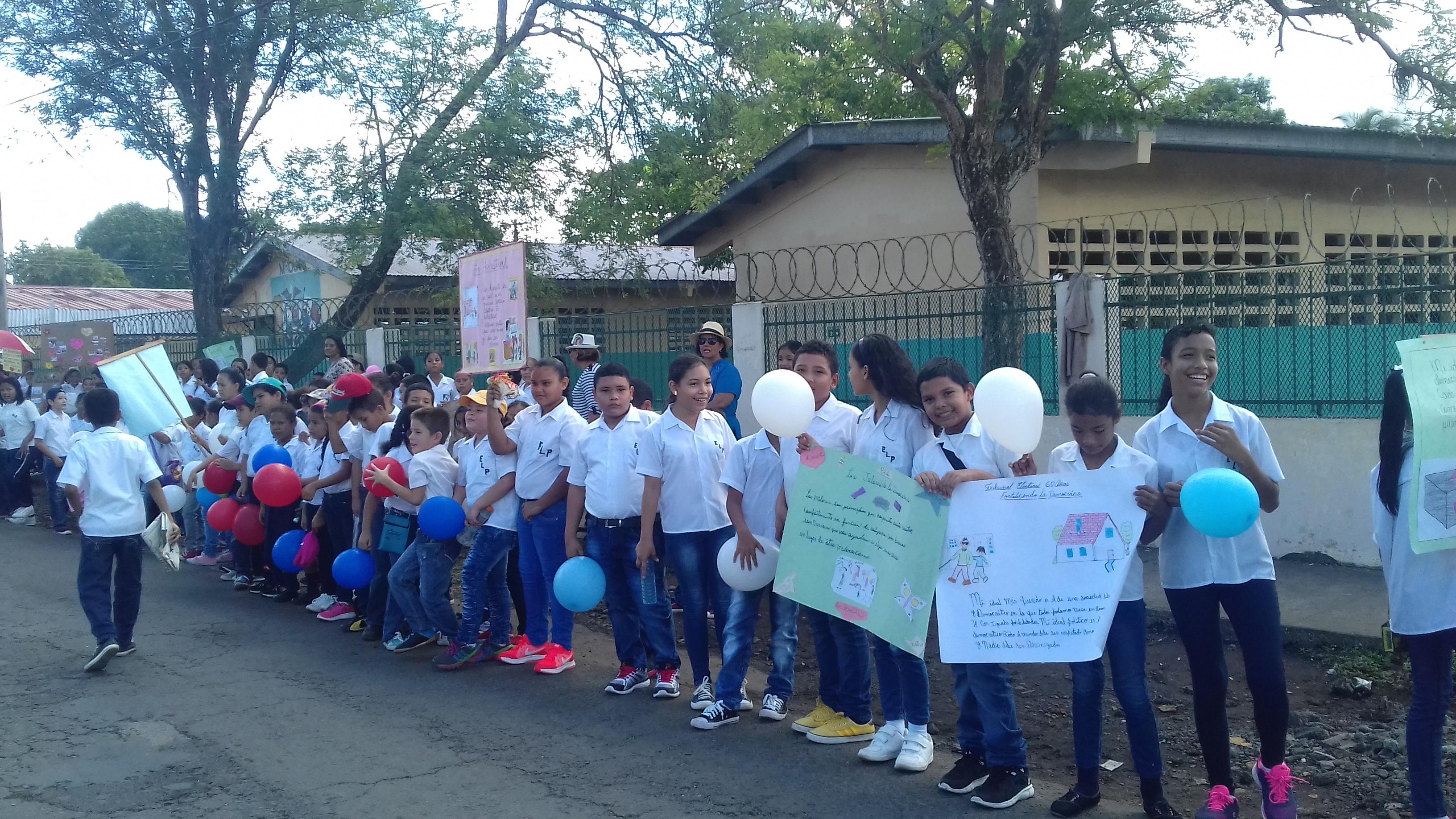 Estudiantes de la escuela La Primavera en el corregimiento de Pedregal en David, Chiriquí, en medio de una cadena humana pidieron no más violencia y que impere la paz, principalmente en este corregimiento catalogado por las autoridades como zona roja.