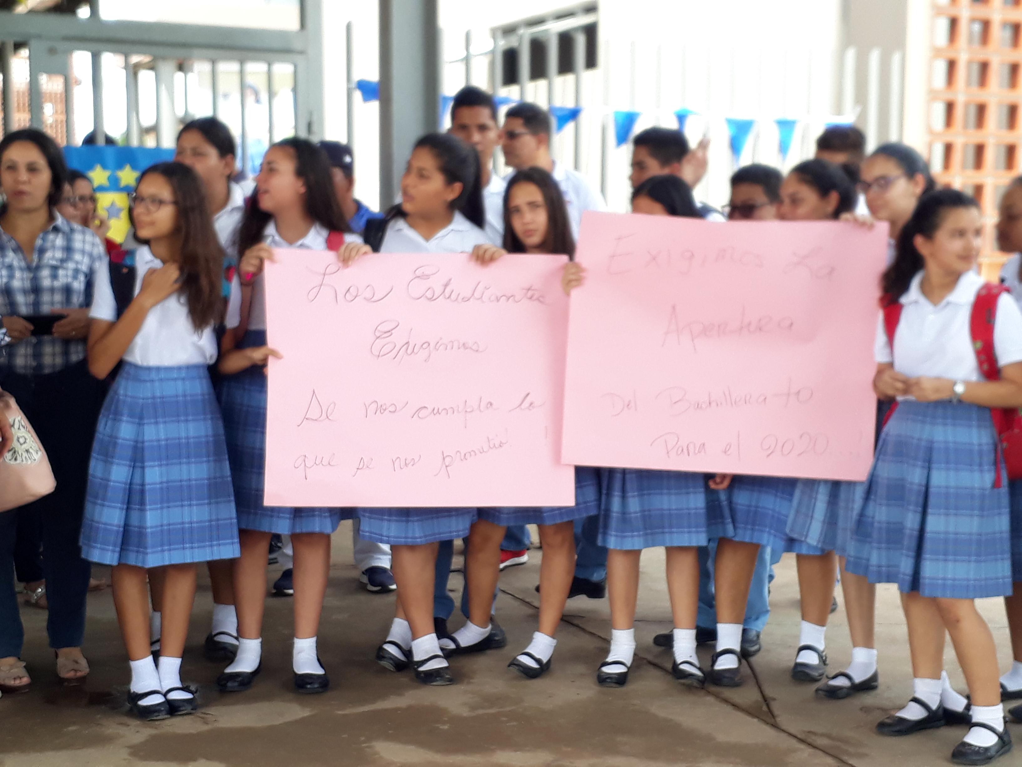 Según los manifestantes, el centro educativo, que inició labores a inicios de este año lectivo, tiene múltiples carencias que no han sido resueltas, entre ellas la falta de luz eléctrica, que obliga al plantel a laborar con una planta.