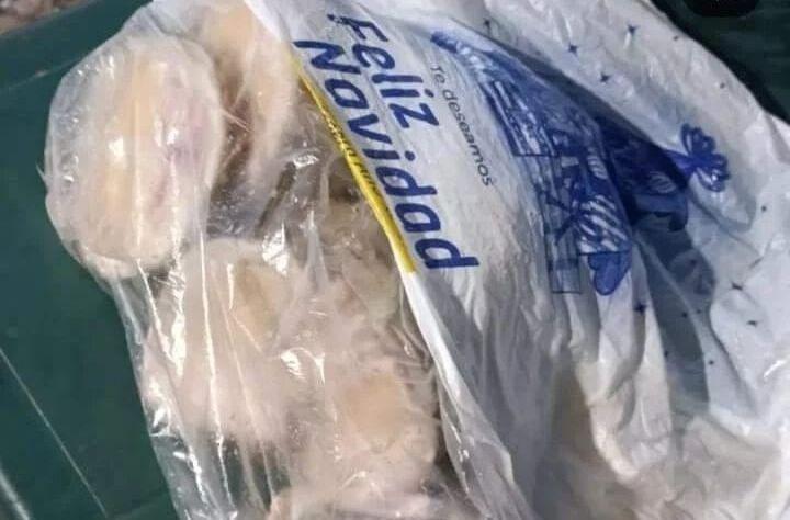 Por las redes sociales circula unas fotos de las patas de vacas empacadas en un cartucho que dice ¡ Feliz Navidad!