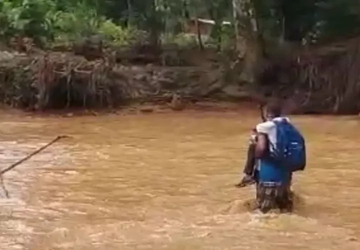 Unas 10 familias que residen en la comunidad de Quije en el distrito de Natá, provincia de Coclé se arriesgan a cruzar a pie el Río Co, luego de que el puente colgante existente fuera destruido por la crecida de este afluente.
