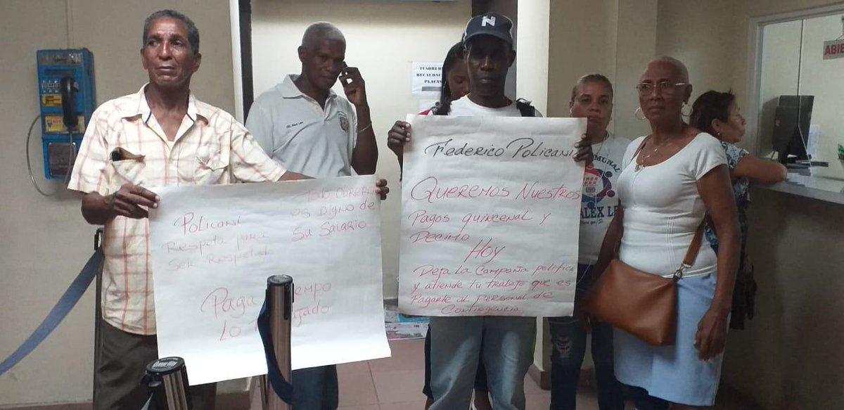 Un grupo de funcionarios de la junta comunal del Barrio Sur, provincia de Colón, realizaron hoy, lunes, un piquete en las instalaciones de la Tesorería del Municipio , debido a que no han cobrado dos quincenas salariales y el décimo tercer mes .