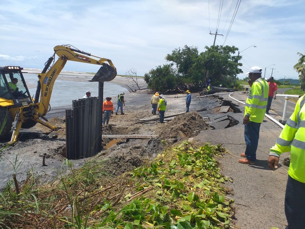 Una barrera metálica comenzó a ser colocada provisionalmente por el Ministerio de Obras Públicas (MOP) en la zona costera de Punta Chame, provincia de Panamá Oeste, en donde el fuerte oleaje registrado la semana pasada, destruyó parte de la carretera.