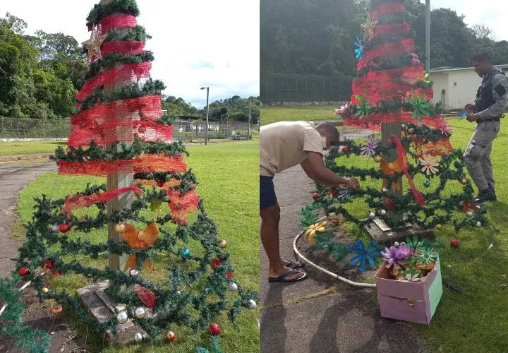 Jóvenes en conflicto con la Ley Penal, el Instituto de Estudios Interdisciplinarios (IEI) realizó el montaje del primer árbol de Navidad ecológico en el Centro de Custodia y Cumplimiento Basilio Lakas (CCCBL) de la provincia de Colón.