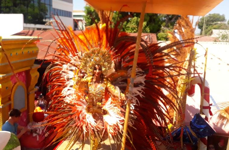 La primera en hacer su entrada al carnaval chitreano fue la reina de Calle Arriba, Luisa Yassiel Iribarren Torres, quien inició su recorrido por la ruta establecida, seguida minutos más tarde de la soberana de la tuna de Calle Abajo, Nadieshda Isabel Cano Samaniego.
