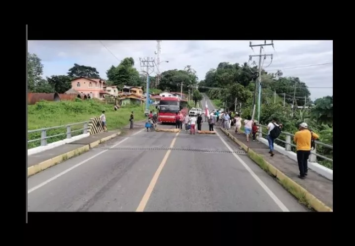 Jubilados cierran la vía Interamericana a la altura del puente sobre el río Piedra.