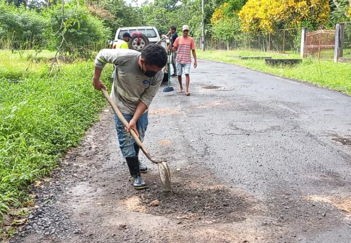 Panamá- Utilizando diversos materiales algunos poco duraderos, las juntas comunales en la provincia de Panamá Oeste están realizando la tarea de reparar los baches en las carreteras.