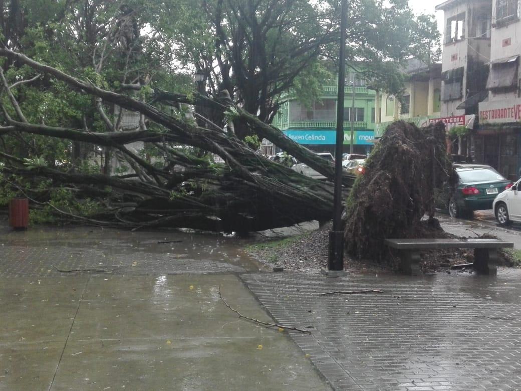 Un enorme árbol ubicado en el parque de la calle 10 avenida Central, cayó en medio de las ráfagas de viento que azotó la costa Atlántica.