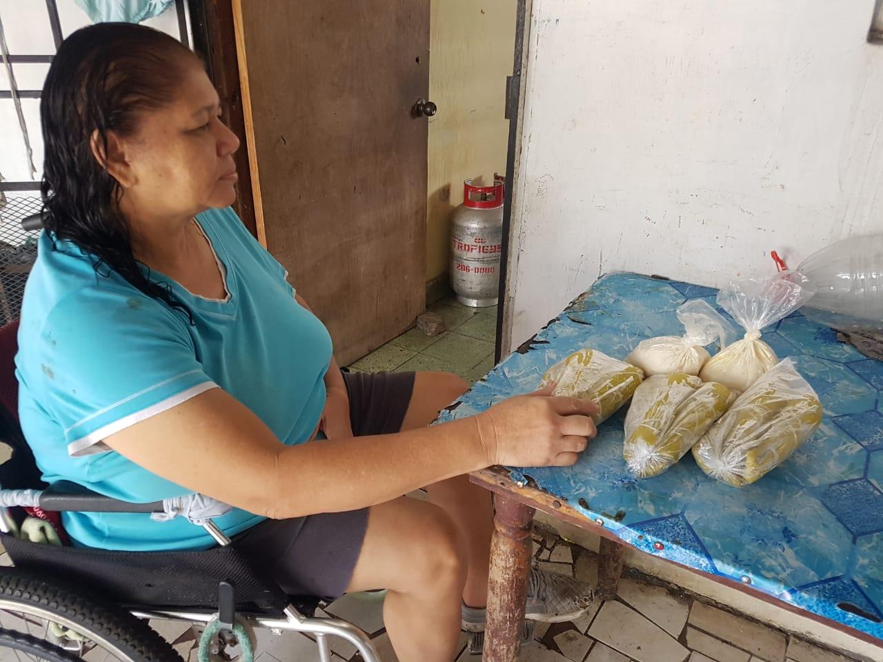 Más, si quien los confecciona es una madre que, a pesar de poseer una discapacidad física realiza el trabajo de preparación y venta de bollos, tortillas y masa para pastelitos, acompañados de chicharrones.