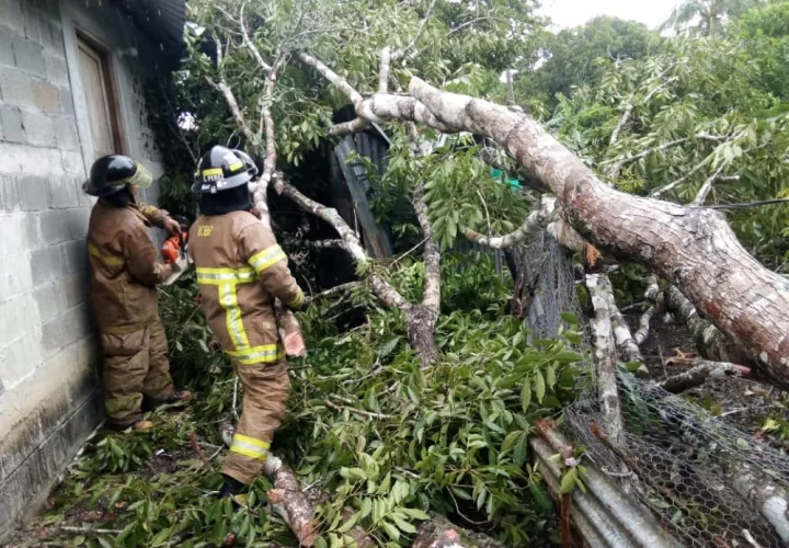En Tonosí, en la comunidad de Pueblo Nuevo, el Cuerpo de Bomberos informó de afectaciones parciales en una residencia, producto de la caída de un árbol sobre la estructura.