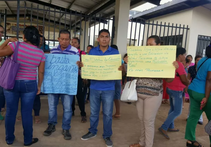 Un grupo de padres de familia de la escuela escuela República de China-Taiwán, ubicada en corregimiento de Pacora, realizan un mitín en la parte exterior del plantel por promesas incumplidas por parte de las autoridades del Ministerio de Educación.