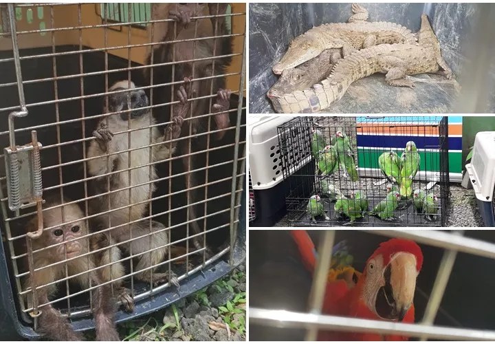 De forma inmediata Mi Ambiente acude al lugar y se percata que en la residencia se mantenían dos monos cariblanco y un mono tití, cuatro babillos de las especies reptiles, una guacamaya bandera, do periquitos, 13 loros moña roja, un loro moño amarillo y cuatro casangas; que estaban en cautivero.