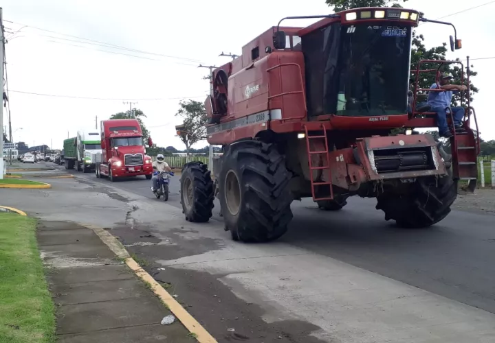 Con sus tractores, maquinarias y otros equipos de faena salieron hoy,jueves, los productores de arroz para protestar contra el gobierno de Juan Carlos Varela por el atraso en el pago de los $7.50 por quintal de arroz de la cosecha 2017-2018 que suman más $10 millones.