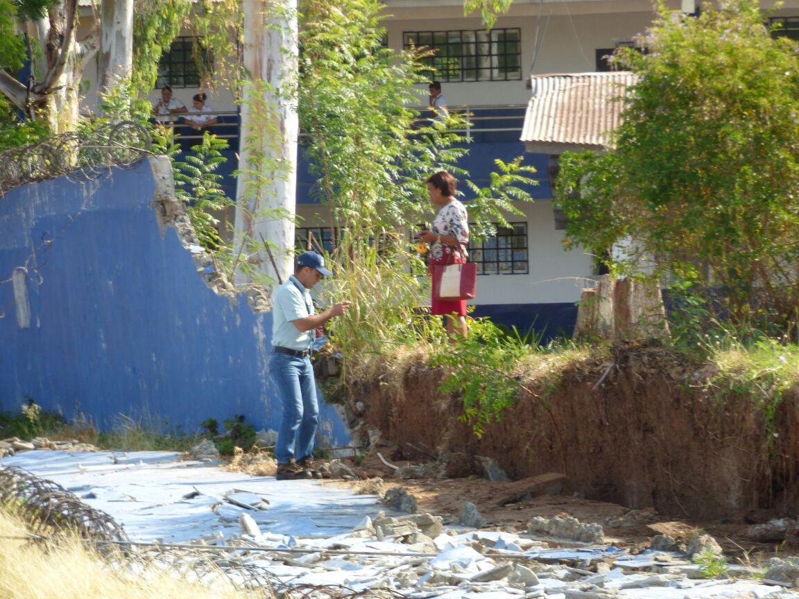 El miércoles, un equipo del Sistema Nacional de Protección Civil y del Ministerio de Educación, recorrió las instalaciones para evaluar la condición del muro y dar recomendaciones a estudiantes y directivos del plantel.