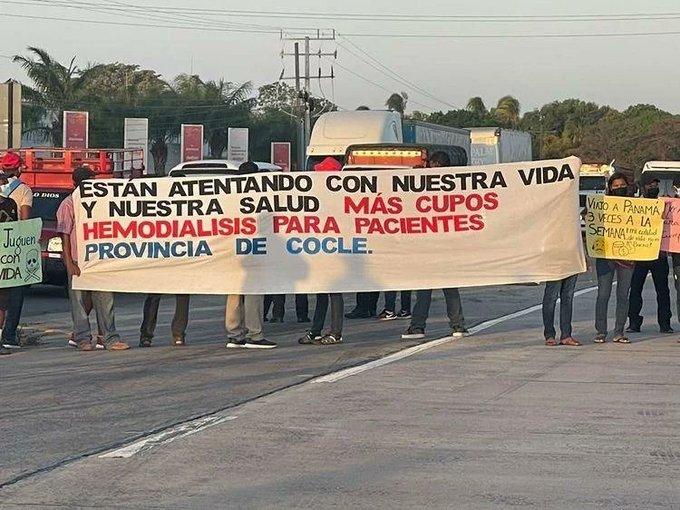 Panamá- Pacientes de hemodiálisis cierran los cuatro paños de la vía Interamericana a la altura de Río Hato. Exigen a las autoridades de Salud que sus tratamientos sean realizados en la provincia de Coclé y no trasladarse hacia la ciudad capital.