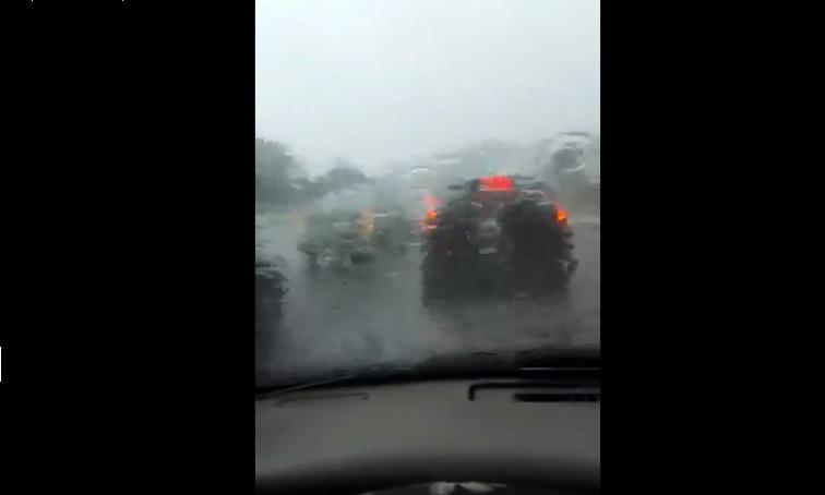 La fuerte lluvias acompañada de vientos causó también la caída de un árbol sobre la vía en el área de el Chorro de Burunga.