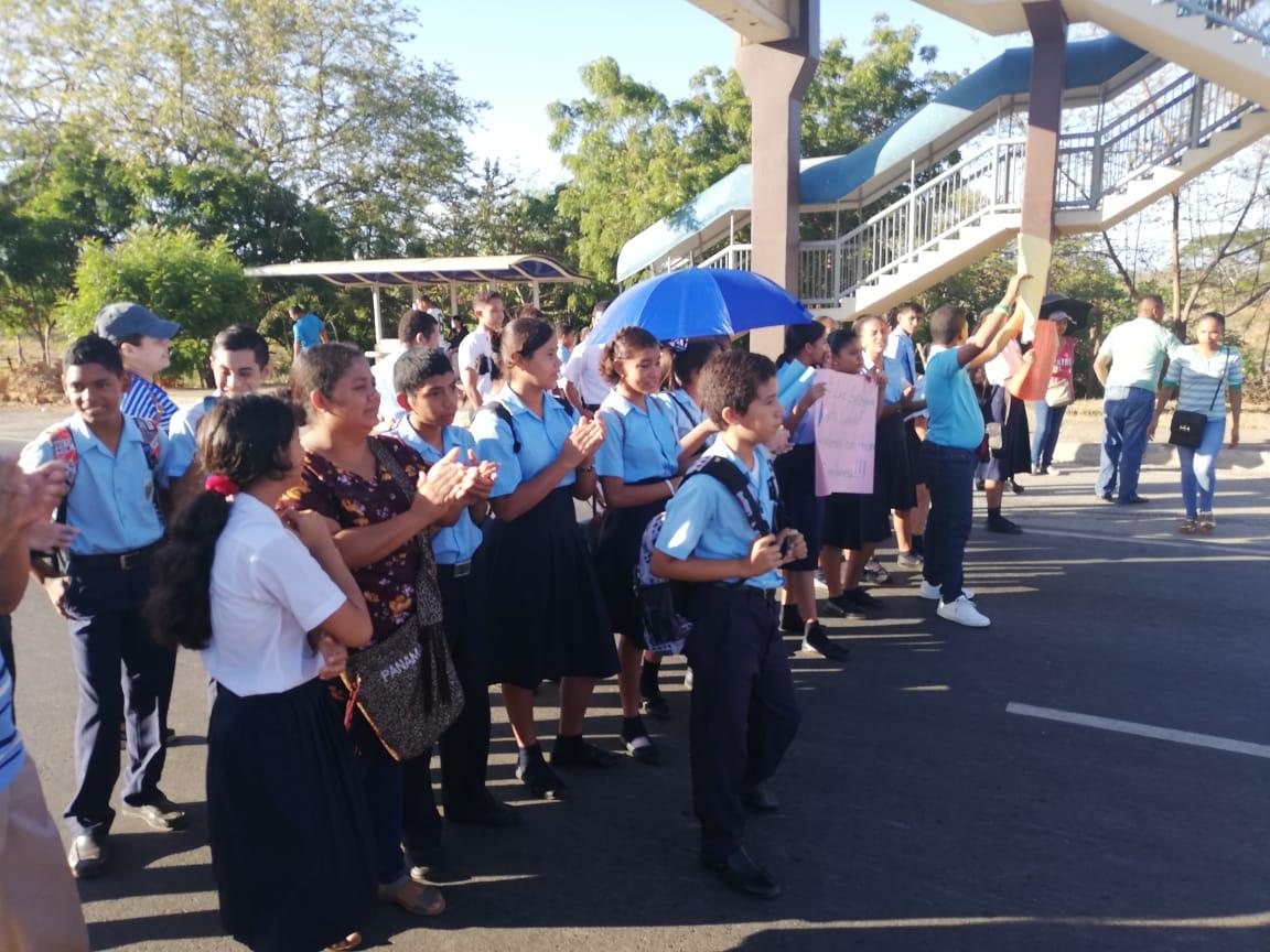 Gritando consignas, los manifestantes se instalaron debajo del puente peatonal en la entrada de Puerto Limón, para exigir que se cumpla con el proyecto de 6.5 millones de balboas para la construcción del nuevo plantel.