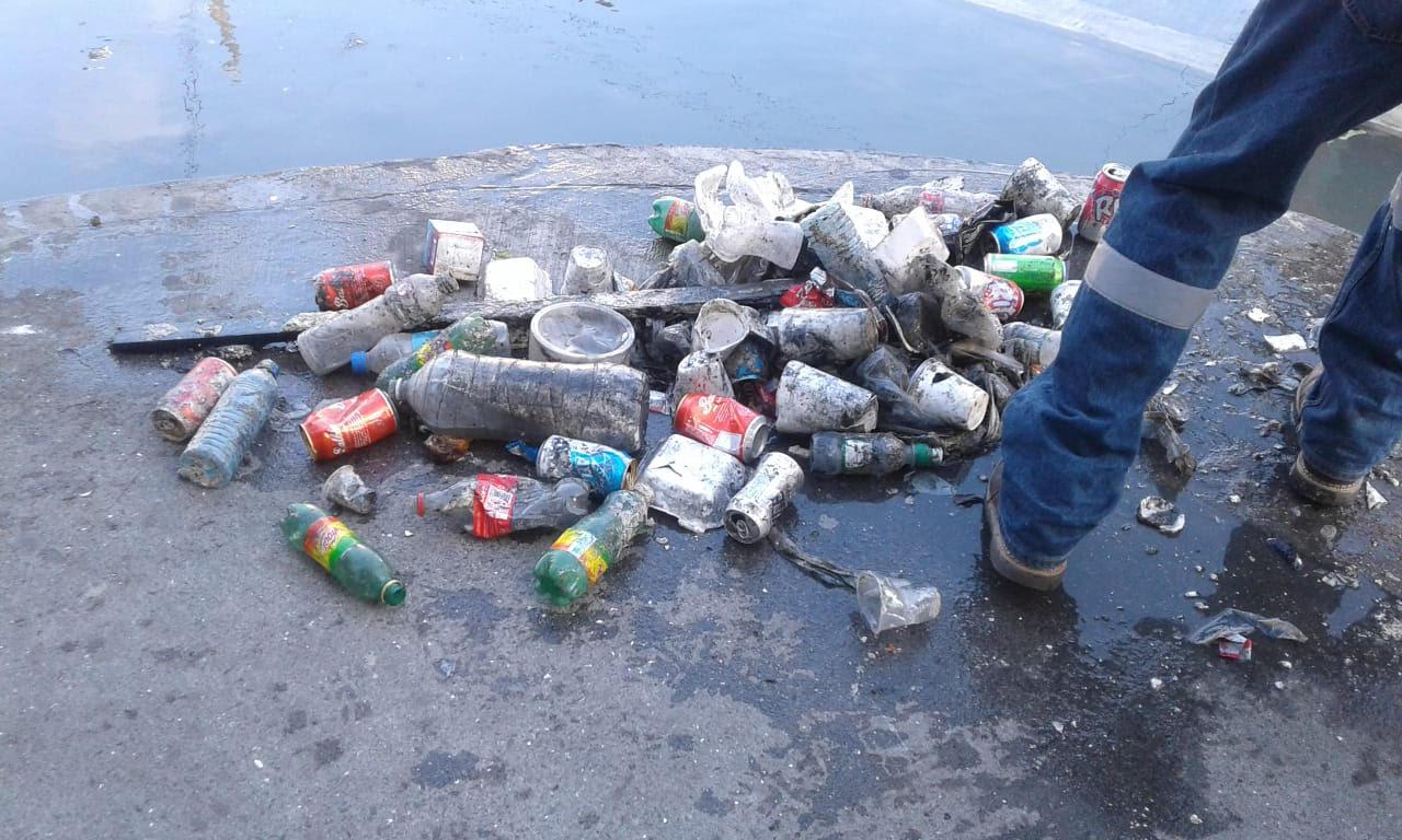 Durante la realización de estos trabajos se encontró una gran cantidad de basura y desechos de todo tipo los cuales obstaculizaban el libre flujo del agua en el sistema.