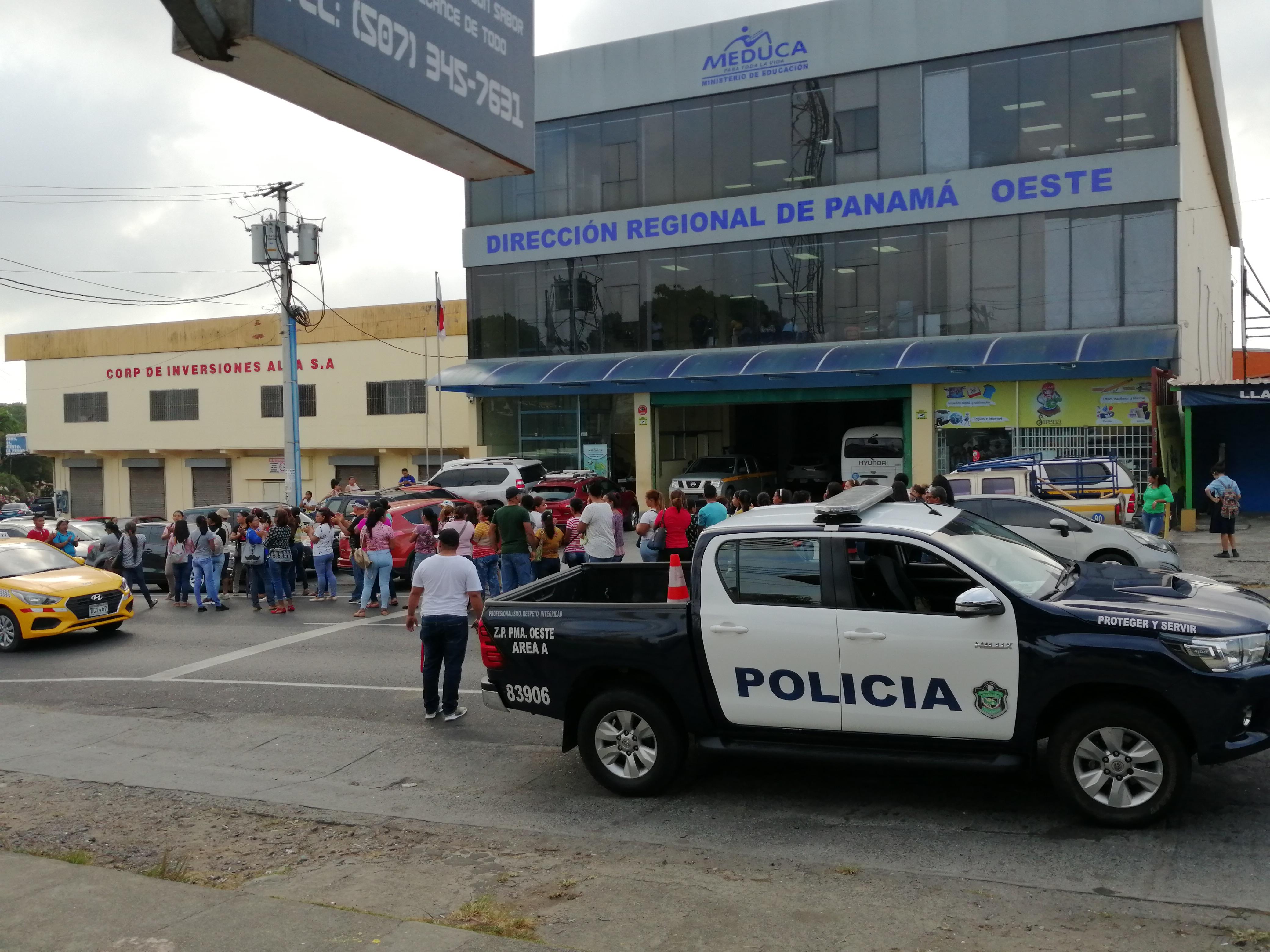 Un grupo de padres de familia del colegio Moisés Castillo Ocaña en La Chorrera, mantienen cerrado el acceso a la sede del Ministerio de Educación (MEDUCA) en la provincia de Panamá Oeste.