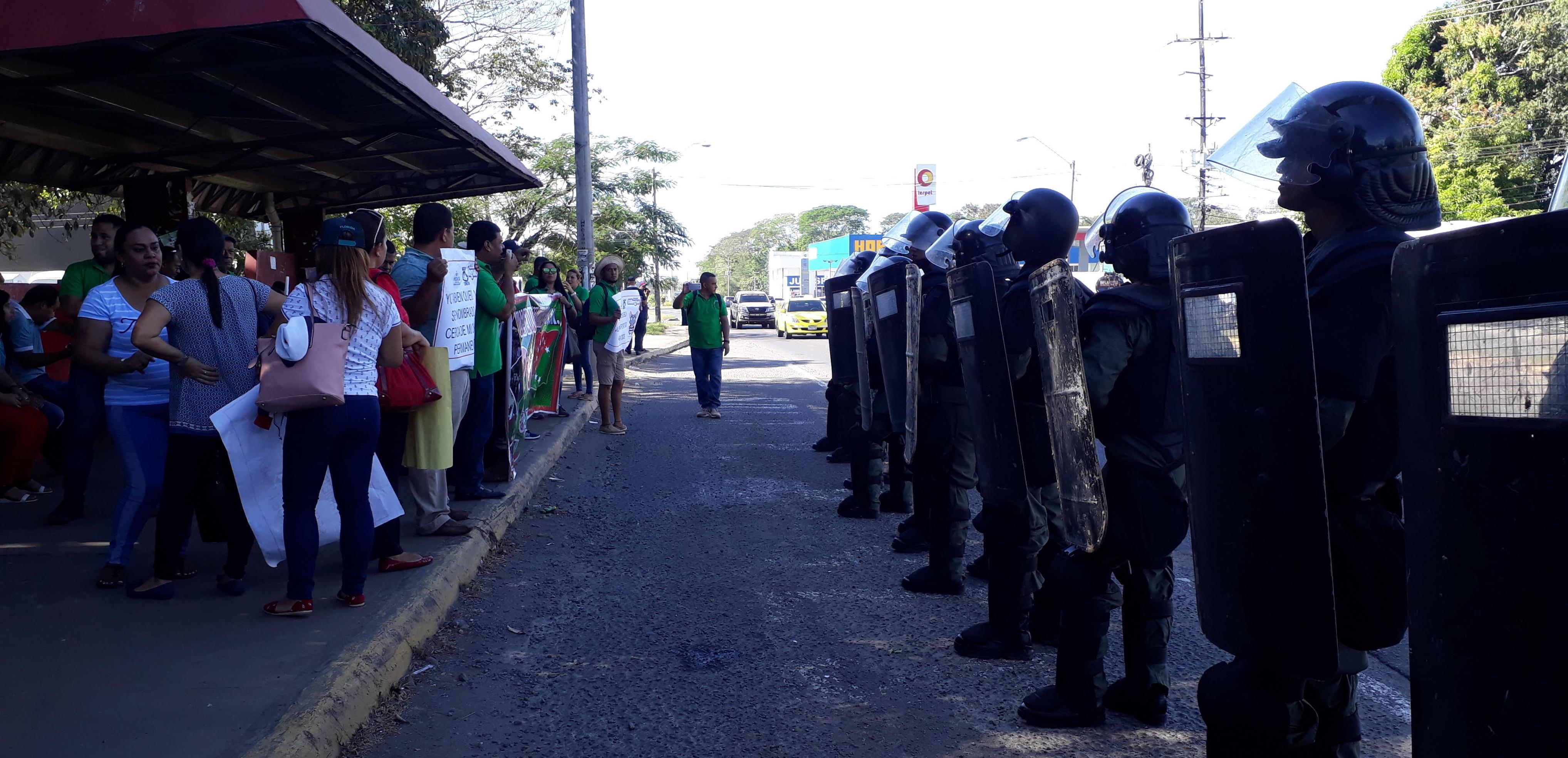 Las puertas de Meduca fueron abiertas con unidades de la Policia Nacional, lo que generó que los docentes cerrarán la vía Interamericana, sin embargo, las unidades del control de multitudes rociaron gas pimienta para sacarlos.