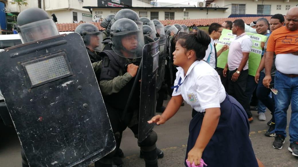 Unidades de Control de Multidudes de la Policía Nacional replegaron hoy a un grupo de estudiantes y docentes del Instituto Profesional y Técnico (IPT) Fernando de Lesseps, ubicado en Arraiján, en medio de un cierre de la vía Interamericana.