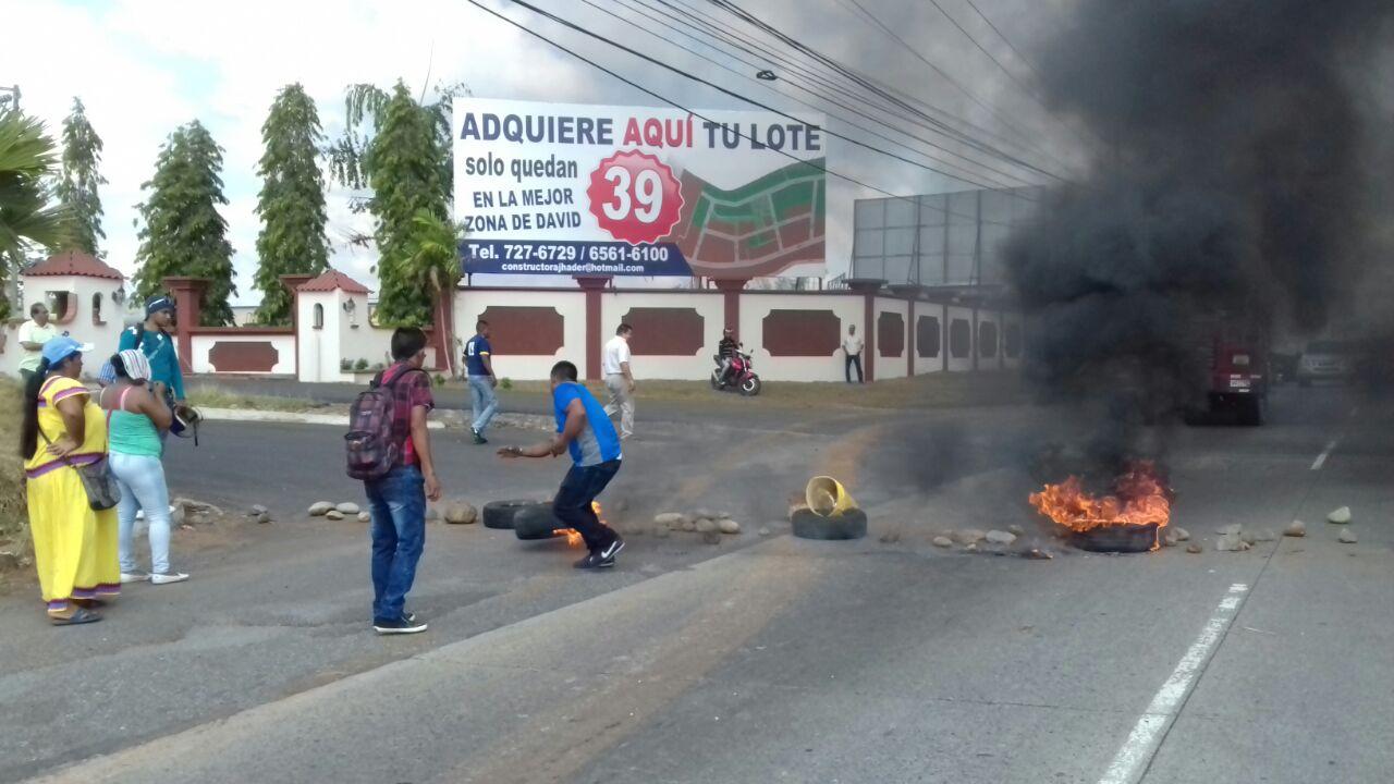 Un grupo de precaristas de Los Abanicos No. 3 mantienen la vía Interamericana cerrada en su totalidad a la altura de la entrada de Montilla en David , Chiriqui, donde aseguran se debe a los más de 65 despidos en el proyecto "Techos de Esperanza" que ejecuta el Ministerio de Vivienda.