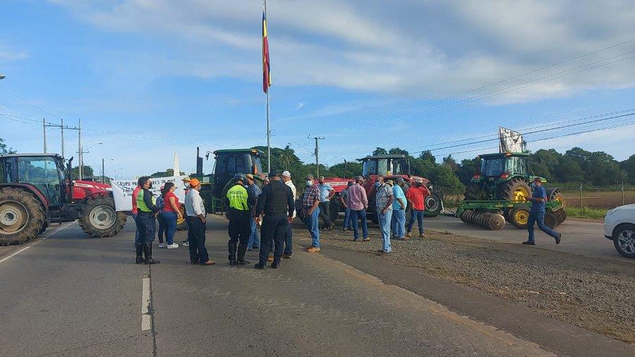 Productores de maíz de Los Santos protestan y cierran vía con sus tractores