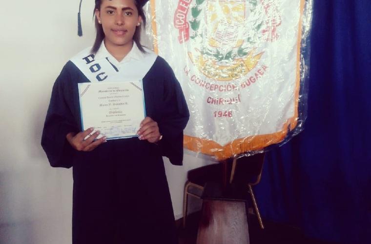 El pasado 19 de diciembre se efectuó la graduación de bachilleres en Ciencias, en Servicio y Gestión Institucional, así como Humanidades, en el colegio Daniel Octavio Crespo de La Concepción, en Bugaba, Chiriquí. En la foto, la joven María Yinibeth Samudio Rodríguez con su diploma de bachillerato.