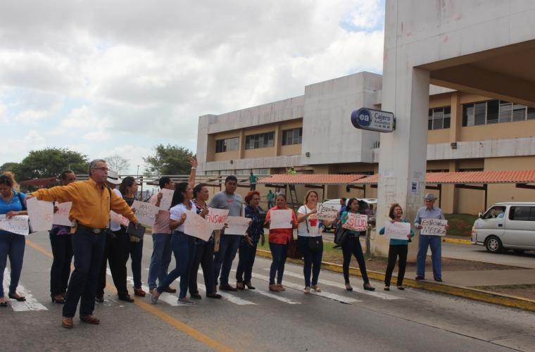 Previo a la llegada del funcionario, un grupo de chorreranos realizaron el cierre de la vía hacia el corregimiento de Puerto Caimito, con pancartas y pailas.