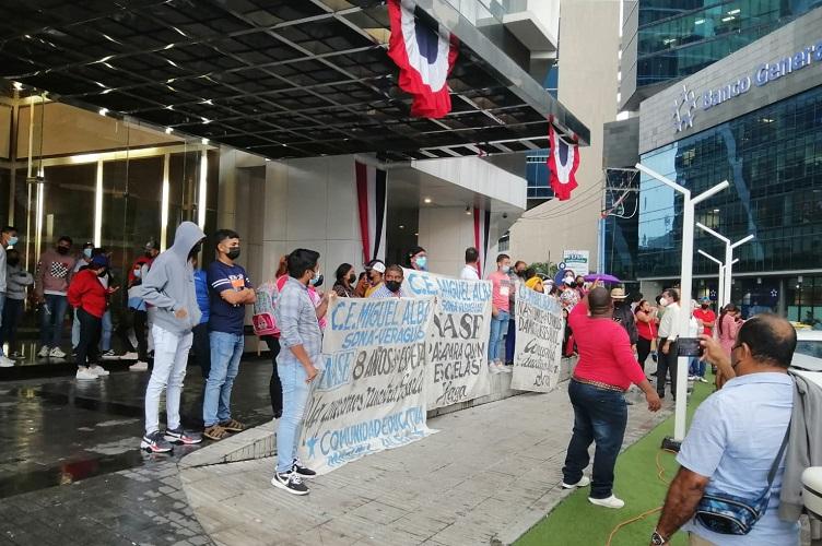 Padres de familia, docentes y residentes de la comunidad educativa de la Escuela Miguel Alba de Soná, decidieron realizar una protesta pacífica frente a las oficinas de NASE en la ciudad capital, cerca a la Cinta Costera.