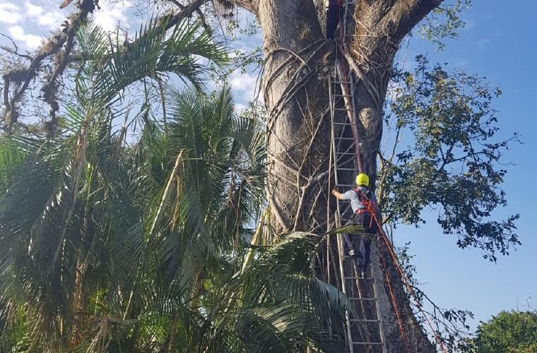 Bomberos rescataron ayer a un jornalero que podaba un enorme árbol cerca de Colegio San Vicente de la ciudad de Santiago de Veraguas y que sufrió un fuerte dolor en la columna, impidiendo que pudiera bajar por su cuenta. El jornalero fue trasladado en ambulancia al hospital.